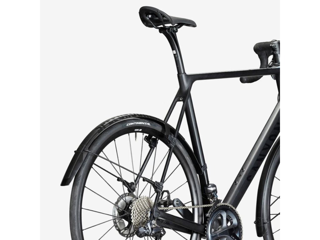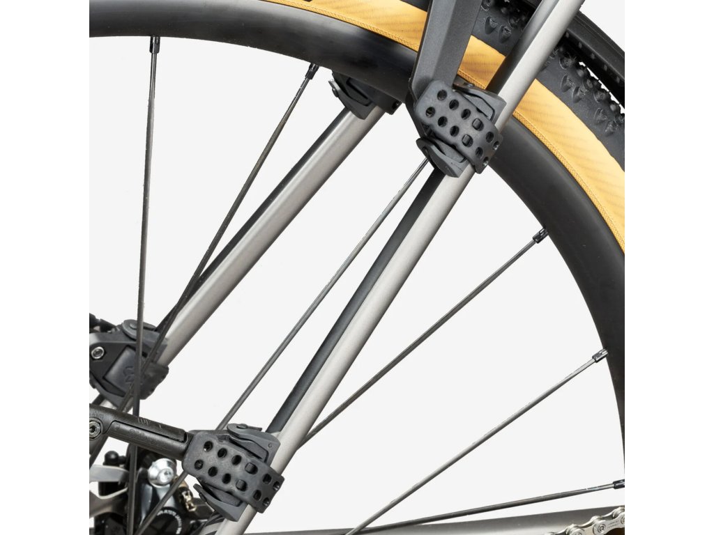 Přední blatník je tvořen spoilerem, který je před vidlicí a zabraňuje stříkání vody před cyklistu, a zadní částí, která zachytává stříkající vodu a bláto od kola. Zadní blatník využívá inovativní vysunovací nástavec pro větší ochranu u sedlové trubky a vše je pevně uchyceno na rámu pomocí nového gumového upevňovacího systému, který sedí na většinu rámů, včetně integrovaných vybrání pro brzdy nebo vedení kabeláže.