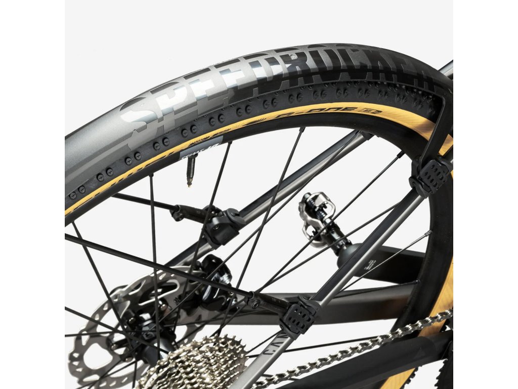 SPEEDROCKER představuje nový vzhled vzpěr ESC Vario Safety System. Pevné, ale lehké, černé eloxované hliníkové vzpěry jsou navrženy širší než obvykle, pro dostatečný prostor mezi nimi. To dodává SPEEDROCKERu nejen elegantní celkový vzhled, ale také maximalizuje prostor mezi pláštěm a blatníkem.