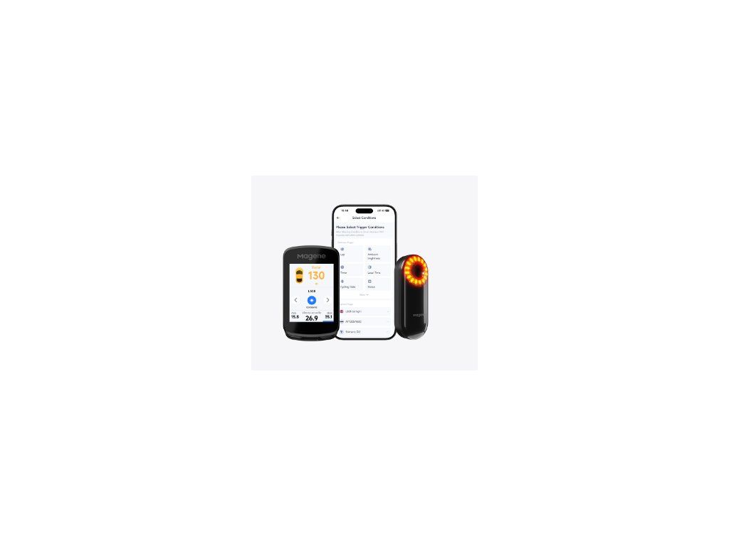 Podporované zařízení Snímač rychlosti, snímač kadence, monitor srdečního tepu, kombinovaný snímač rychlosti/kadence, měřič výkonu, inteligentní trenažér, radarové zadní světlo a inteligentní zadní světlo L308, kamera DJI, elektronický řadicí systém SHIMANO Di2 a Sram eTap, DJI & Insta360 Control