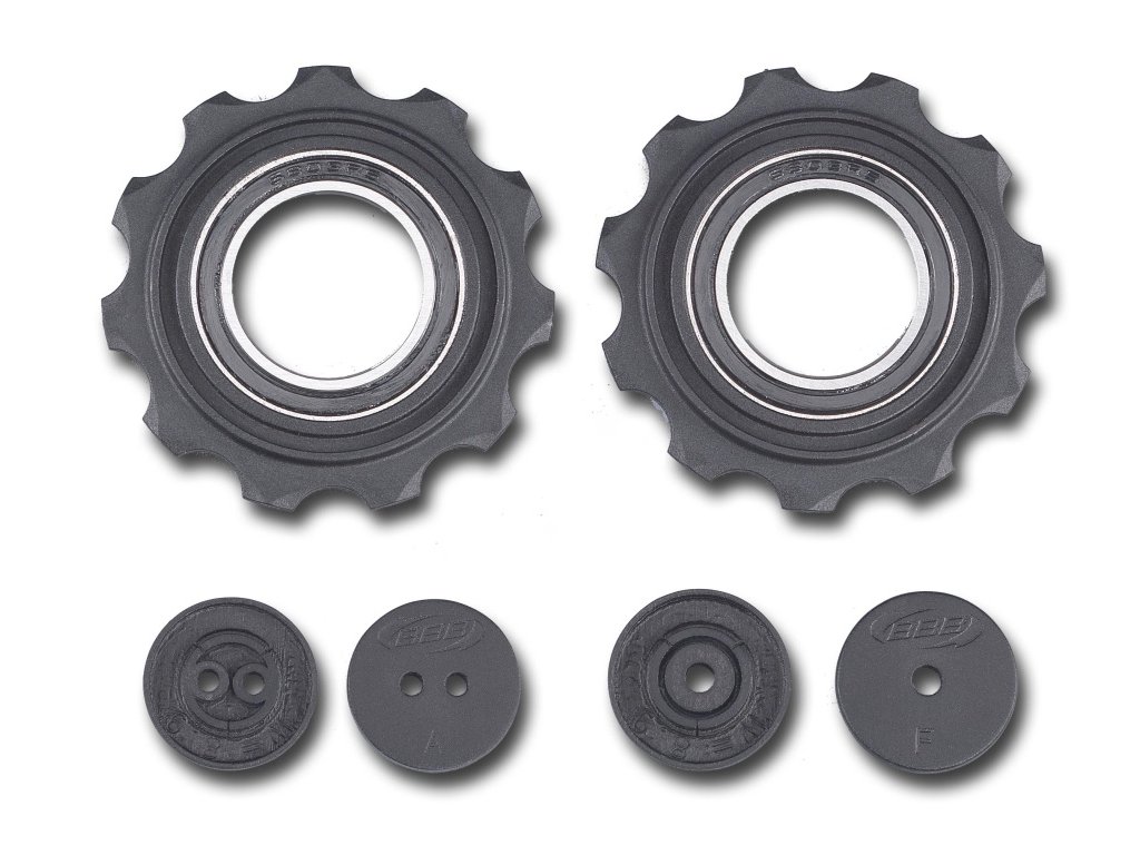 Kvalitní 11-ti zubé rolničky BBB RollerBoys jsou speciálně narvžené pro vybrané přehazovačky Sram. Jsou vyrobené ze speciálního kompozitového materiálu EMS Swiss se 40% příměsí skelného vlákna a vybavené kvalitními průmyslově zapouzdřenými Cr-Moložisky. Součástí rolniček jsou veškeré podložky pro různé typy řadících systémů Sram.
