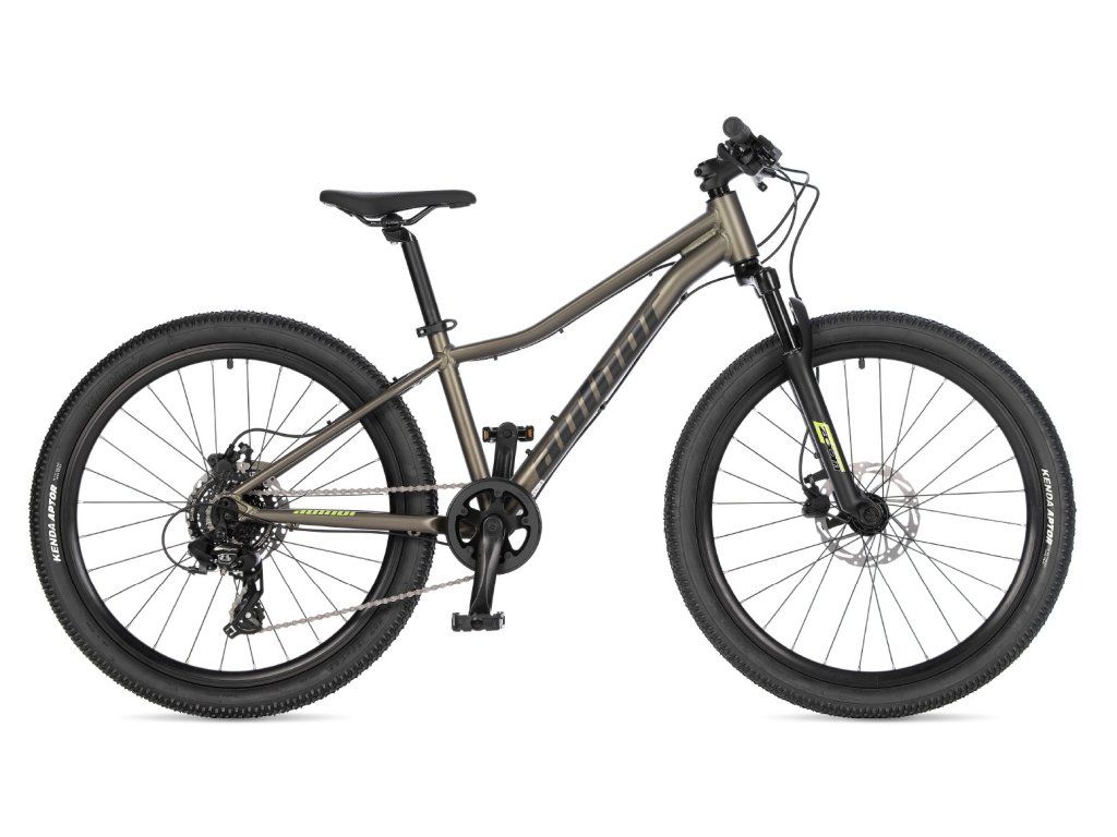 Lehký duralový rám v kombinaci s odpruženou vidlicí pomáhá zvládat nerovnosti v terénu, zatímco spolehlivé hydraulické kotoučové brzdy poskytují přesné a bezpečné brzdění v každé situaci. A-Matrix 24D je ideální přechod mezi dětským kolem a juniorským MTB – bez kompromisů v ovladatelnosti a bezpečí.