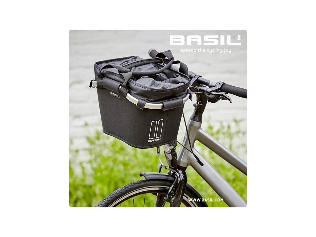Basil Classic Carry All Front Basket KF je lehký designový koš na kolo v černé barvě. Je to ideální koš na kolo pro rychlé vyřízení nebo pro milovníky rekreační jízdy na kole. Snadno do ní uložíte sbalený oběd, kombinézu nebo něco jiného. Díky úchytům košík snadno vezmete do obchodu. Koš o objemu 15 litrů. Koš a upínací systém Basil KF je součástí balení.