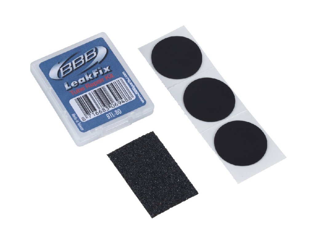 Kvalitní samolepící sada BBB LeakFix slouží k opravě poškozených duší. Při opravě není potřeba lepidlo, opravné záplaty jsou samolepící. Sada obsahuje smirkový papír a opravné záplaty.