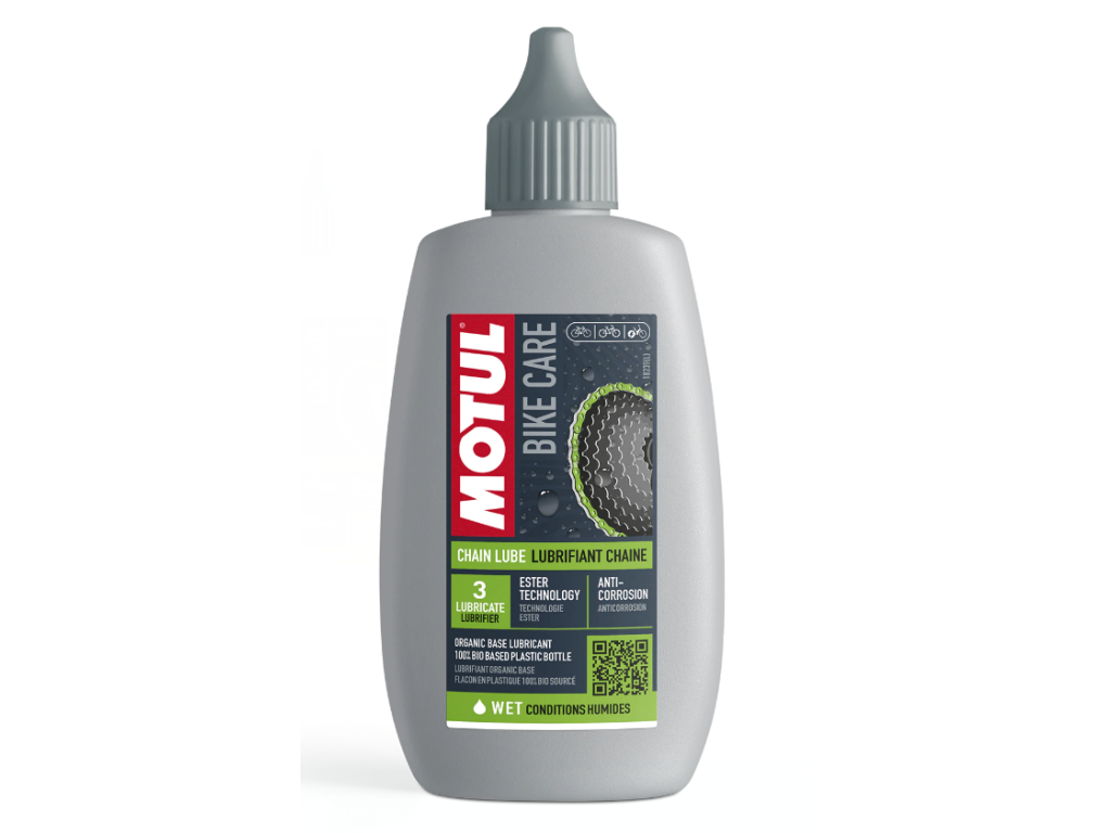 MOTUL Chain Lube Wet usnadňuje důkladné mazání všech typů řetězů jízdních kol. Pomocí nejmodernější technologie MOTUL Ester přináší Motul Chain Lube Wet nejvyšší standardy mazání řetězů jízdních kol používaných ve vlhkých podmínkách a zároveň je plně biologicky odbouratelný. MOTUL Ester Core Technology poskytuje vysoce polární molekuly s extrémně vysokou přilnavostí k řetězu, odolností proti otěru a maximální odolností vůči tlaku. Maziva s touto technologií zdaleka převyšují výkonnost jiných známých maziv na řetězy s obsahem pevných látek (např. s PTFE). Vhodné pro běžná i elektrická jízdní kola.
