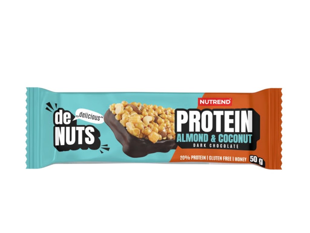 Proteinová tyčinka z oříšků NUTREND DENUTS PROTEIN mandle & kokos v hořké čokoládě 50g