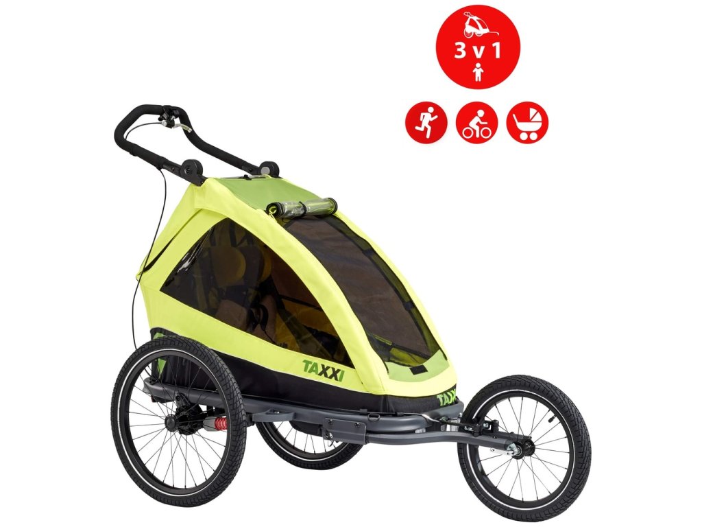Cyklovozík TaXXi Elite 1 určený pro 1 dítě se širokospektrálním zaměřením je vhodný pro druhy sportu jako je cyklistika, běh, in-line bruslení nebo i procházky a turistika. V balení cyklovozíku naleznete – nastavitelnou ruční brzdu, set na kočárek, kolo a běh. Cyklovozík má precizní pružení, které zajistí komfortní cestování a dokáže eliminovat nerovnosti na cestách a mimo cest. Díky velkým bočním oknům, může dítě vidět okolní svět během jízdy. Komfortní sezení s 5 bodovým magnetickým pásovým systémem zajišťuje, aby bylo děťátko v bezpečí během celé jízdy. Snadné čištění zajišťuje odnímatelná rohož.
